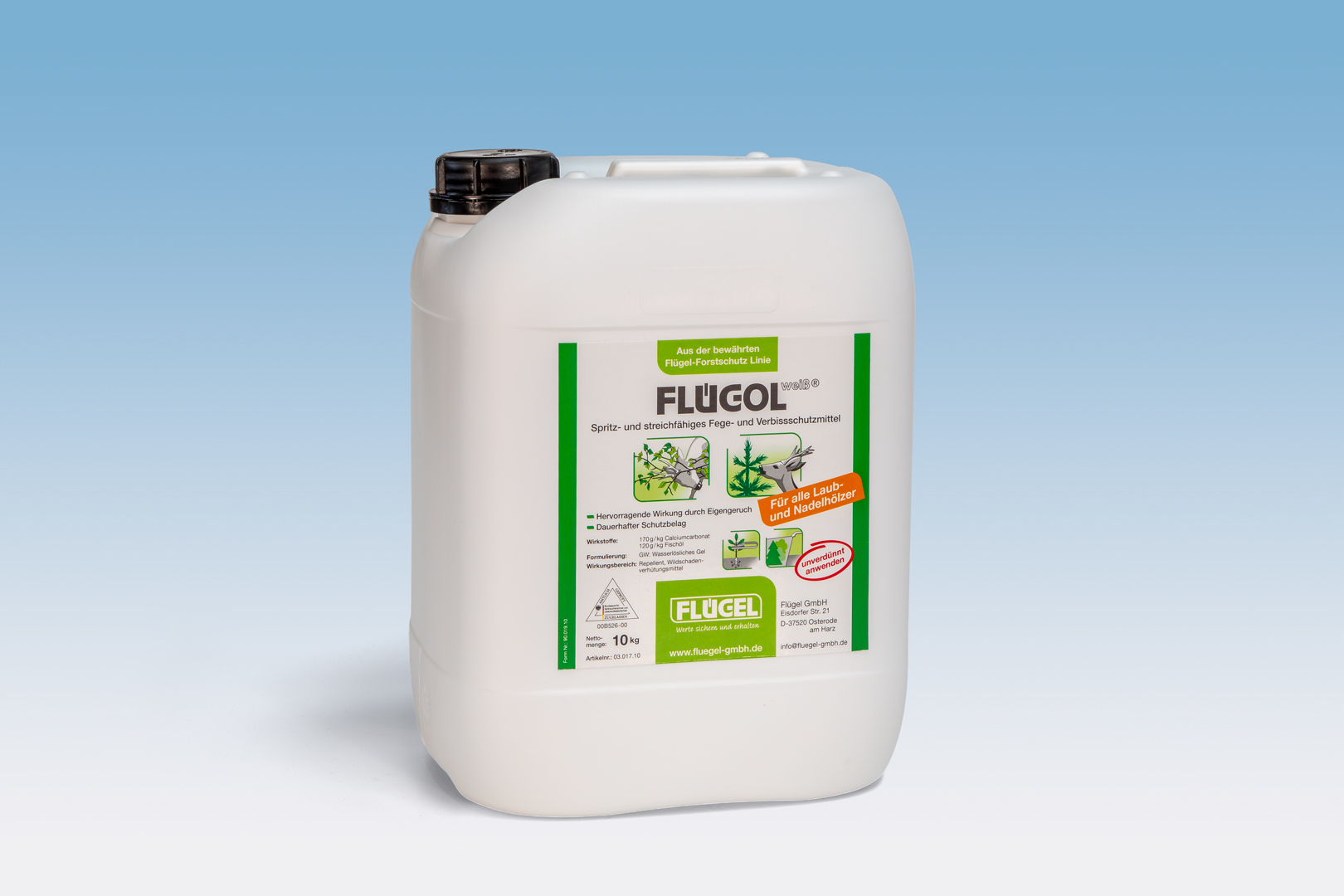 FLÜGOL weiß® ist ein kombiniertes Fege- und Verbissschutzmittel für den Forst zum Schutz von Laub- und Nadelholz. Es kann im Spritz- oder Streichverfahren gegen Fegeschäden durch den Rehbock und gegen Sommer- und Winterverbissschäden durch Reh- und Rotwild ausgebracht werden.