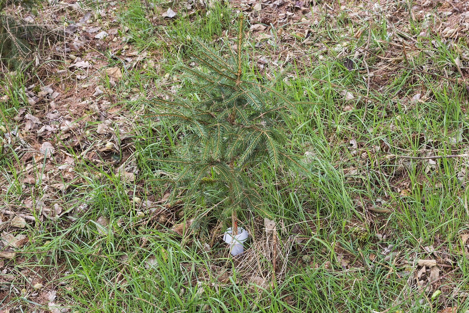 - am Wurzelhals befindliche Äste nach oben biegen, Schutzkragen mit leichtem Druck zusammendrücken bis der Verschluss einrastet