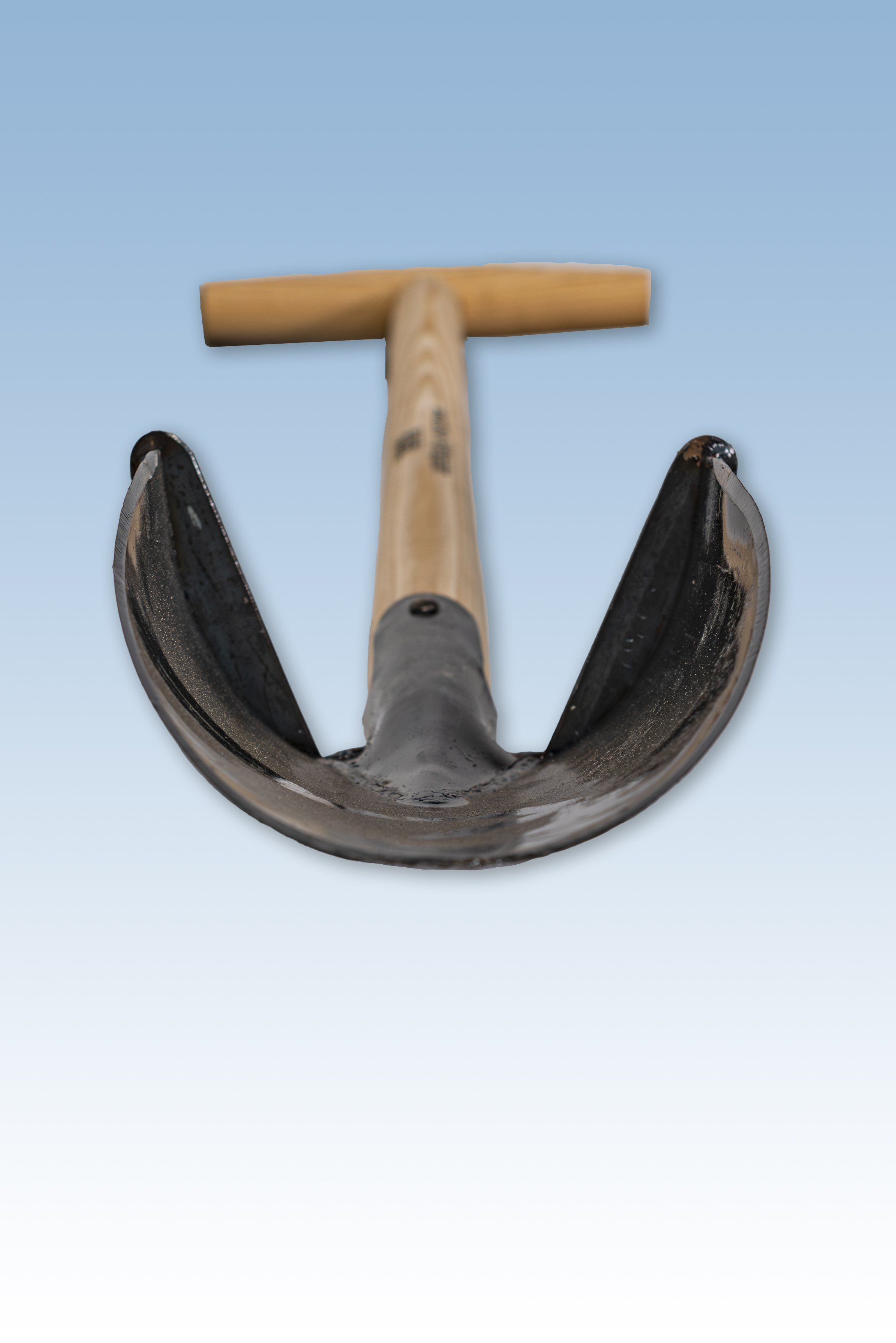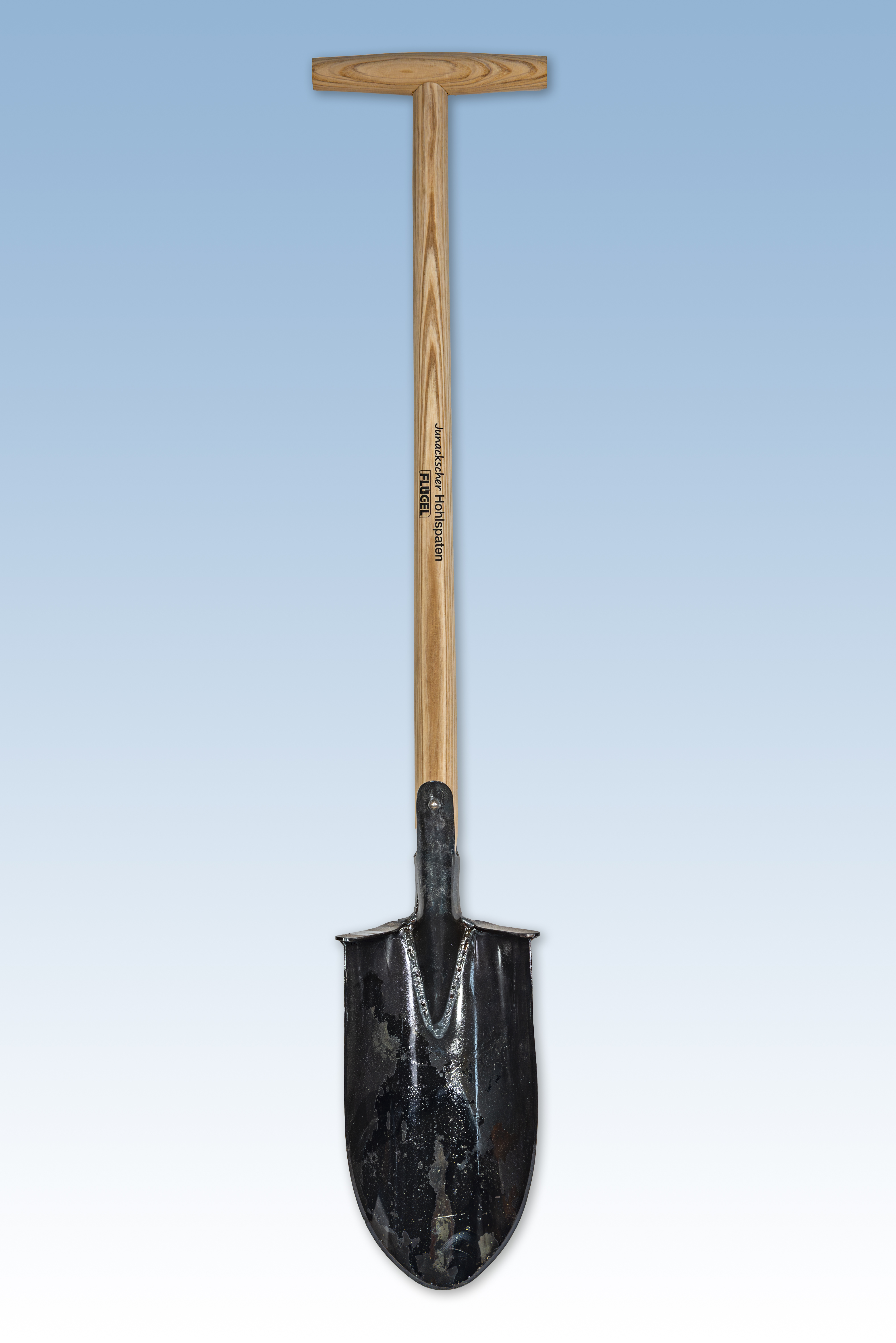 Material: Spatenblatt aus legiertem Stahl. Eschenstiel.