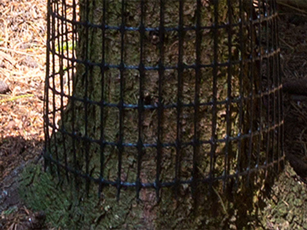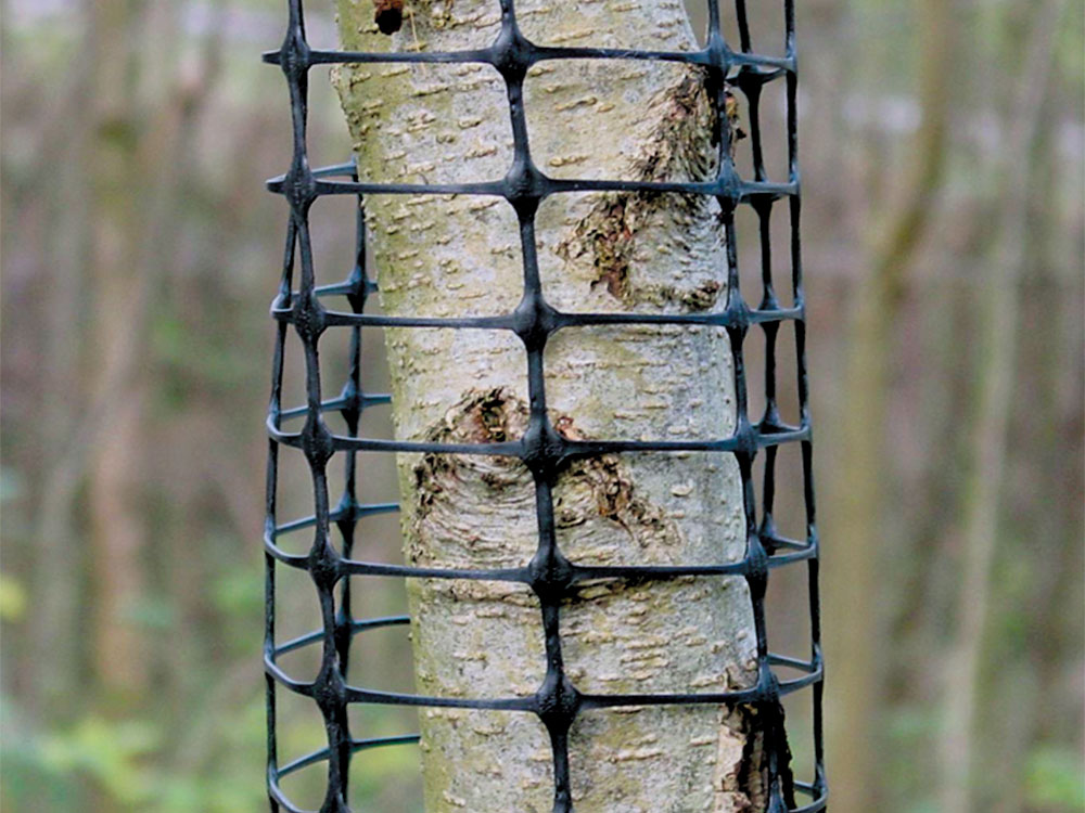 Das stabile, wenig elastische Gewebe, lässt sich formstabil um den Stamm legen. Die überlappenden Längsseiten werden mittels Kabelbindern oder unter Verwendung von Zaunringzangen mit Ringverschlüssen befestigt. Die formstabilen PE-Maschen verhindern dauerhaft ein partielles Schälen des Stammes durch ein Verschieben der Matte und gleichzeitigem Schälen der Schneidezähne. Wurzelanläufe können bei bestimmungsgemäßer Verwendung nicht geschützt werden.