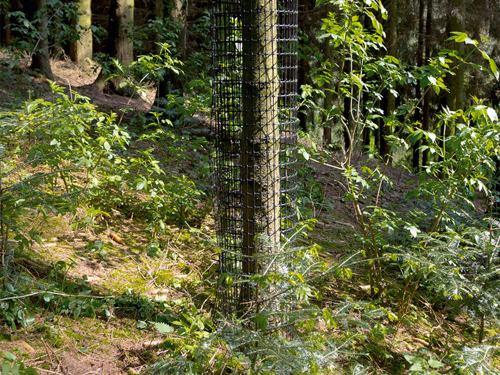 gegen das Schälen des Rotwildes an geastetem Laub- und Nadelholz.