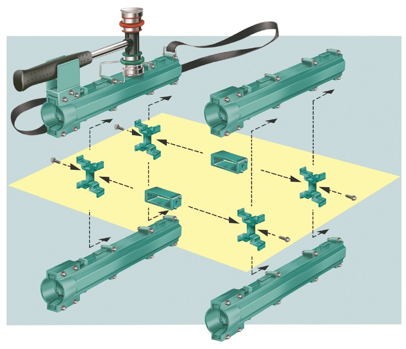 Das flexible Anbausystem ermöglicht Ihnen die individuelle Zusammensetzung der benötigten Abnahmemagazine (bis zu 6 Einheiten). Es sind lediglich die beiden unterschiedlichen Verbindungselemente notwendig. Hochwertige Verarbeitung, dauerhafte Passgenauigkeit der Verbindungselemente sowie verzinkte Schrauben, Federn usw. gewährleisten einen reibungslosen und problemlosen Einsatz.
