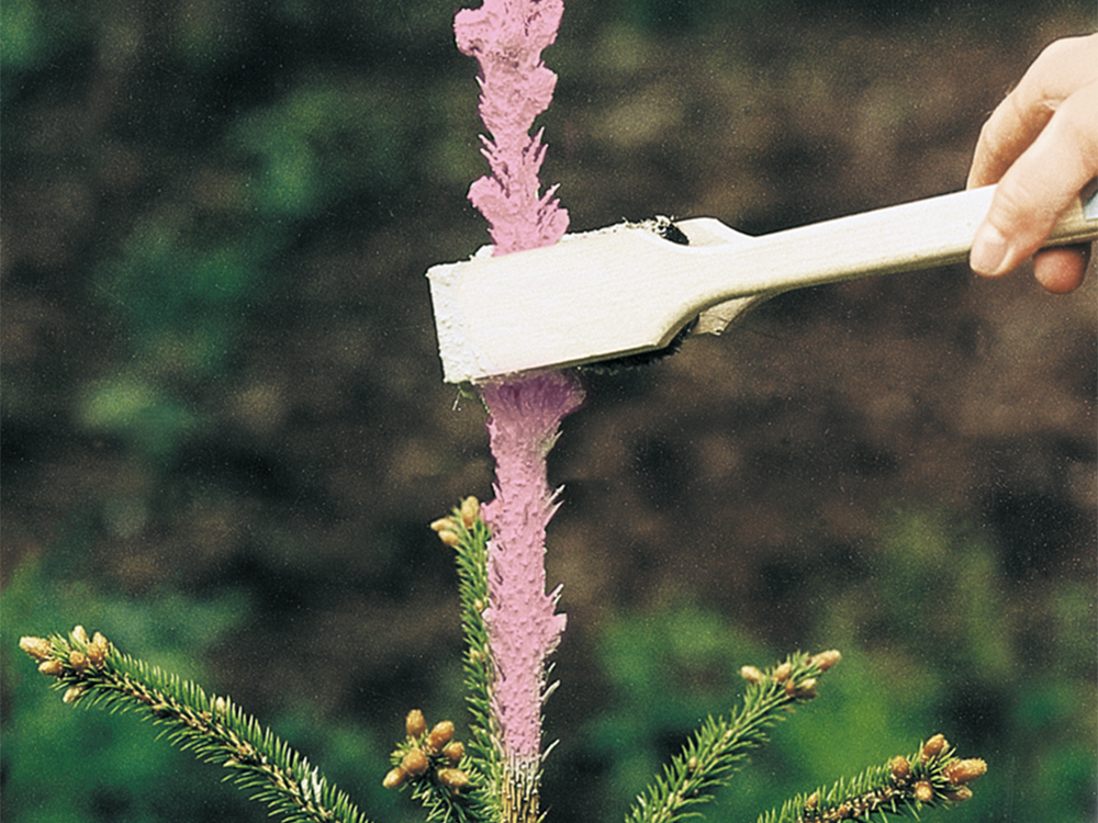 streichfähiges Wildverbissschutzmittel für den Winter, gegen Wildverbiss an Laub- und Nadelhölzern durch Reh-, Dam-, Rot-, Muffelwild, Hase und Kaninchen.