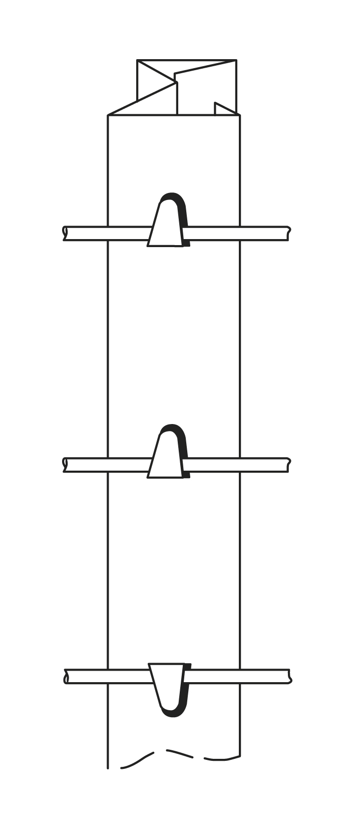 • Hakenabstand durchgehend alle 10 cm, jeder zweite Haken gegenläufig gebogen